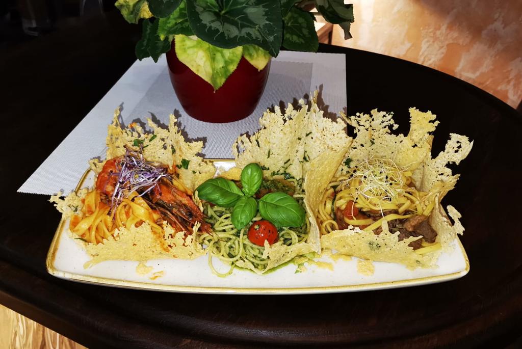 mediterrane Pasta-, Fisch- und Fleischgerichte und